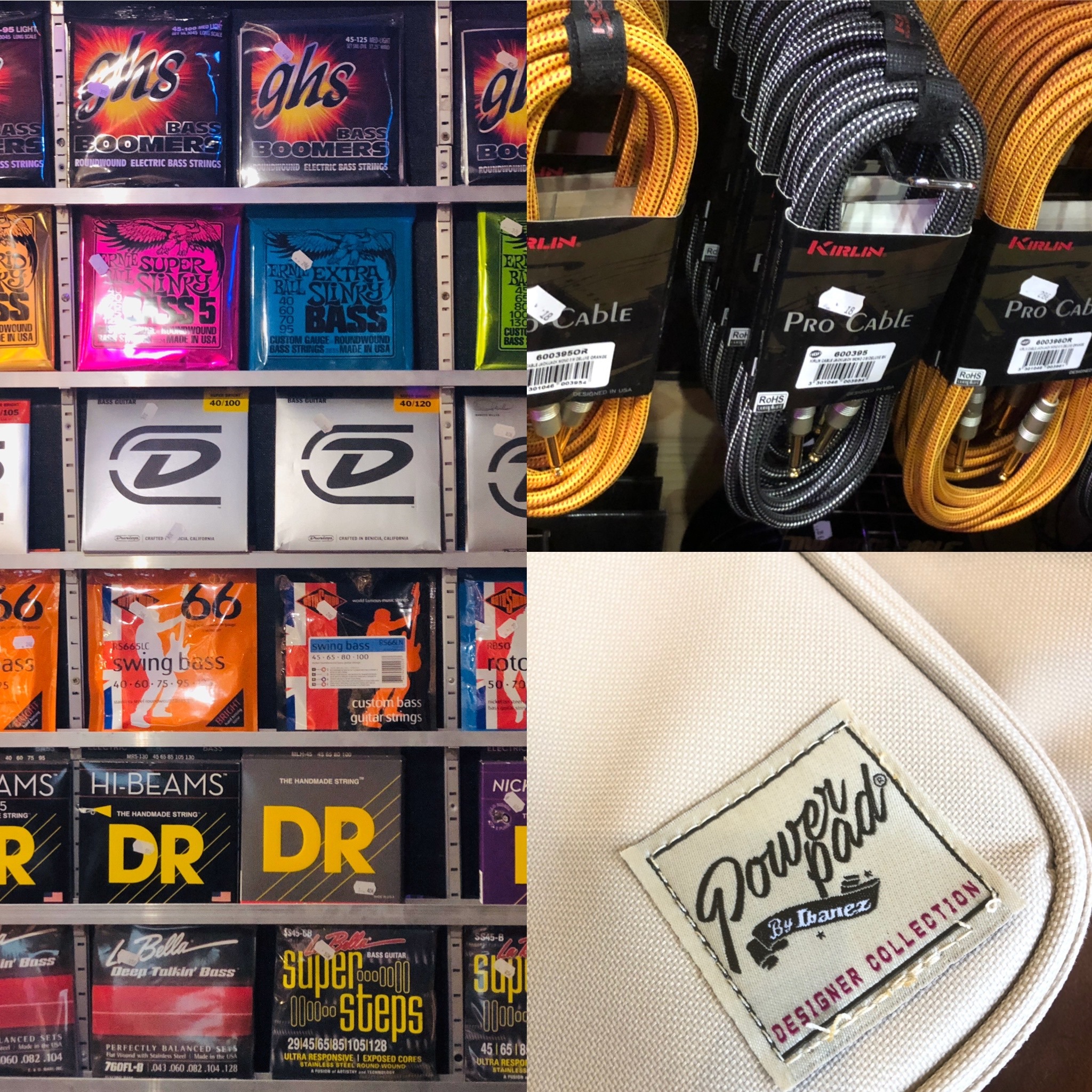 …cordes, jacks, micros, housses, valises électroniques, stands, goodies.
