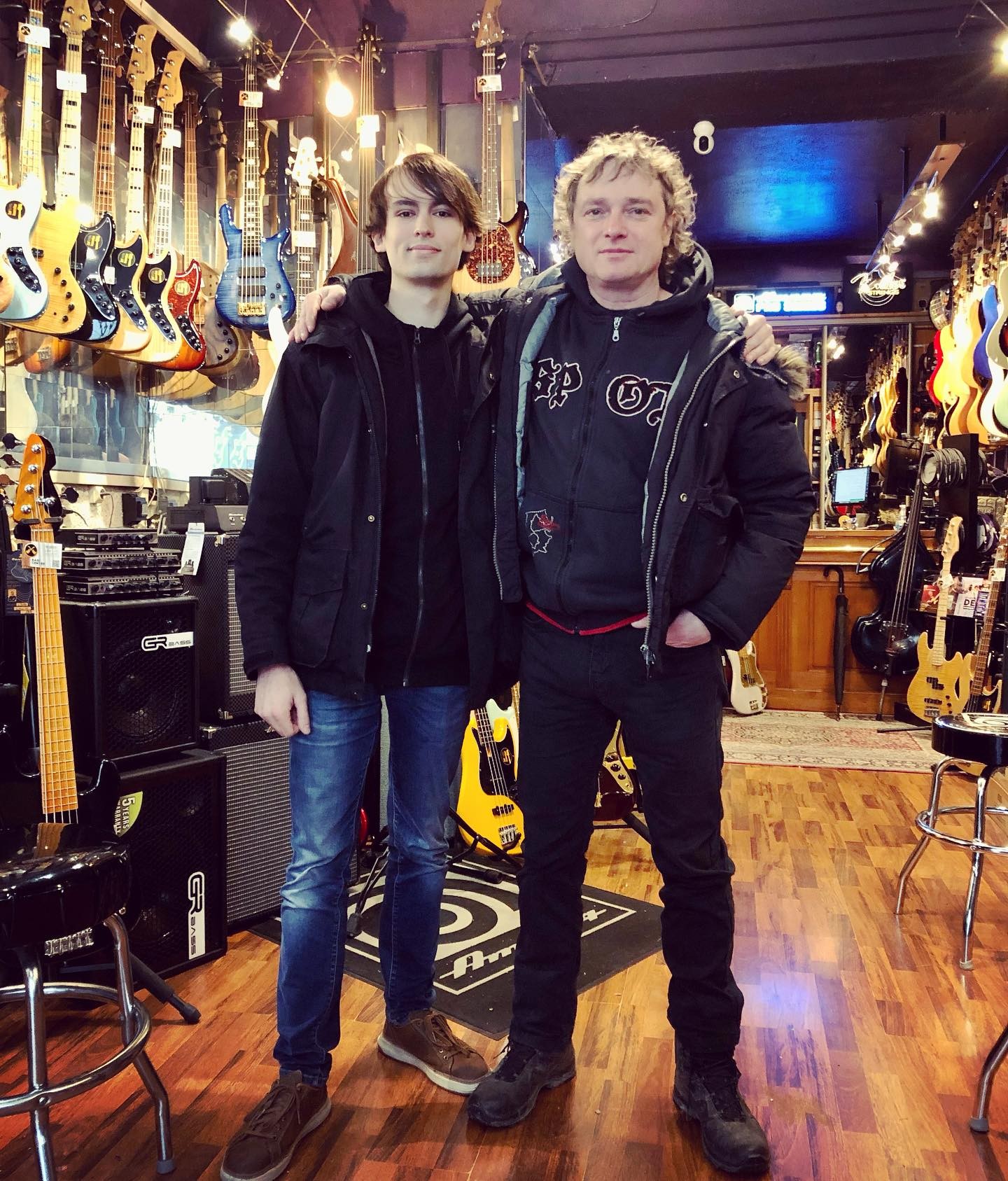 18 FévMerci @pascalmulotofficial et son padawan Thomas de nous avoir rendu visite aujourd’hui pour venir faire l’acquisition d’une belle Fender Jazz Bass American pro II.