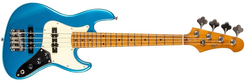 La Flight Mini JB LPB Bass est une basse électrique compacte pensée pour les bassistes nomades ou désirant un instrument léger sans sacrifice sur le son. Avec son corps en peuplier rôti, son manche et sa touche en érable rôti, elle offre une excellente stabilité, une bonne résonance et un toucher fluide. Le diapason réduit de 584 mm (23″) reprend les sensations d’une basse standard tout en étant beaucoup plus maniable. Sa finition Metallic Blue, son pickguard blanc vintage et son accastillage chromé lui donnent un look inspiré des Jazz Bass classiques, mais dans un format mini. Équipée de deux micros Alnico 5 en configuration SS et d’un circuit passif 2 volumes / 1 tonalité, elle délivre un son clair, dynamique et polyvalent.