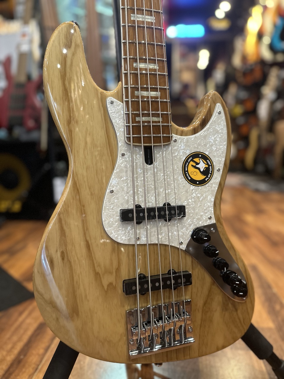 La basse 5 cordes M. MILLER V8 Swamp Ash-5 NT MN adopte une forme Jazz, un corps en Frêne des Marais, un manche en Erable torréfié satiné et une touche en Erable torréfié, le tout magnifié par une finition Naturel.