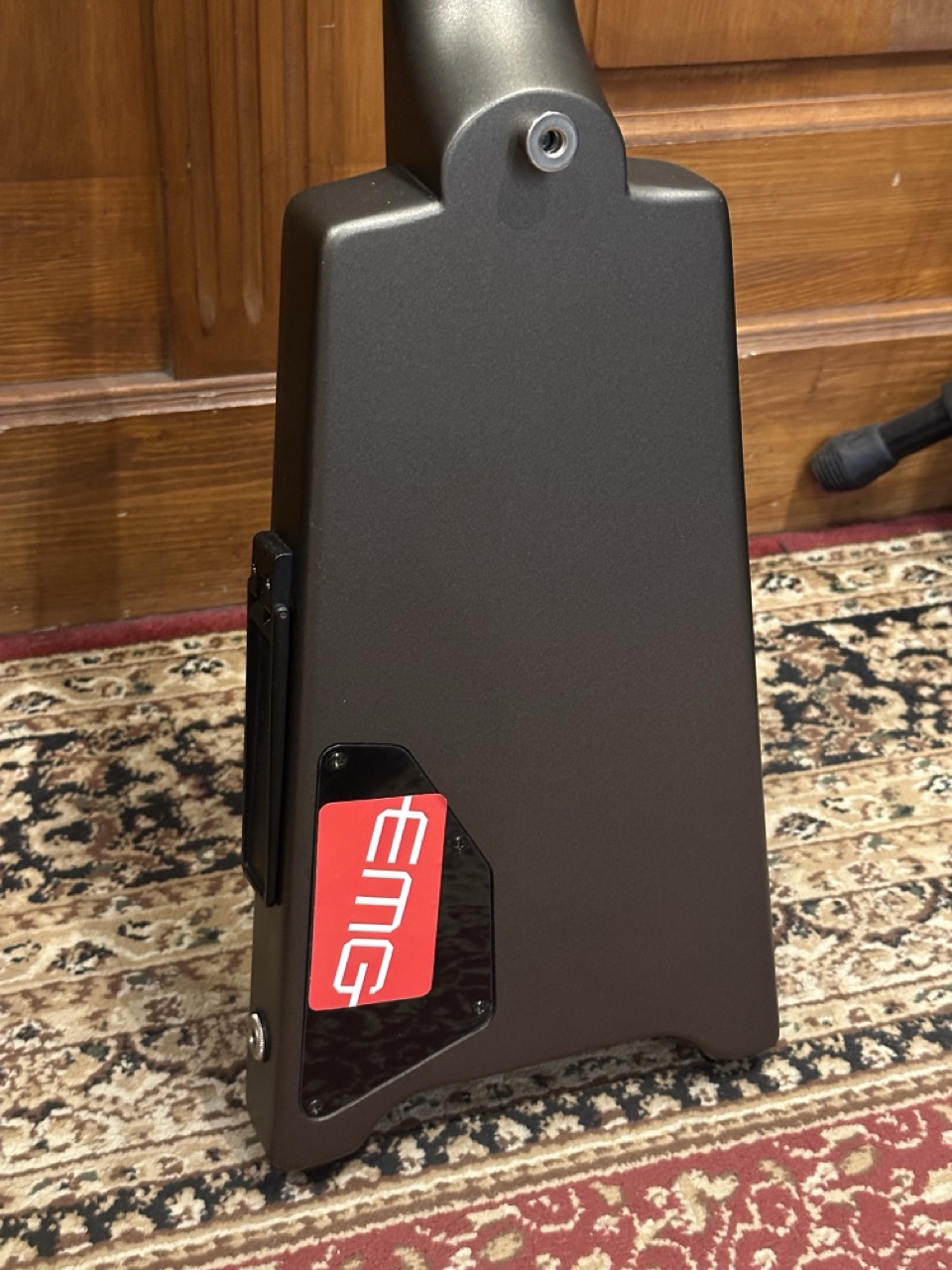 Cet exemplaire en finition Metallic Gray a été modifié avec un jeu de micros EMG passifs type HB, offrant un caractère plus musclé et moderne que l’électronique d’origine.