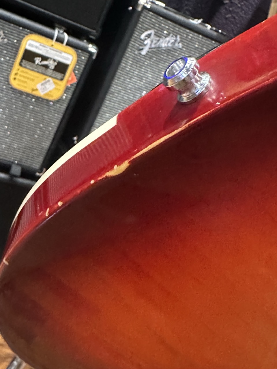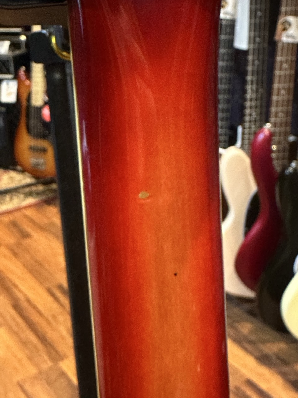 Cette version 2009 en finition Fireglo offre la signature esthétique de la marque, avec son double pickguard, son chevalet massif et son caractère sonore unique : attaque brillante, médiums expressifs et graves fermes.