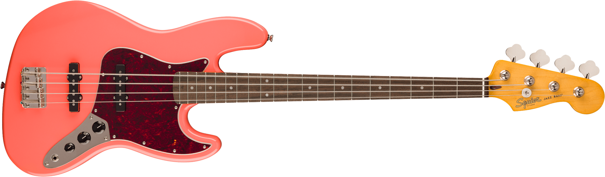 La Squier Classic Vibe ’60s Jazz Bass rend hommage à la décennie de sa création, combinant la jouabilité luxueuse qui a fait sa renommée avec la polyvalence et la puissance sonore de ses deux micros single-coil Alnico conçus par Fender Cette basse électrique 4 cordes propose un corps en Poplar, un manche vissé en Maple et une touche en Indian Laurel avec un profil de manche en C et un radius de 241 mm (9,5″) Finie en Tahitian Coral éclatant avec un pickguard imitation écaille de tortue 4 plis, elle arbore les détails esthétiques caractéristiques des années 60, incluant les marquages de tête d’époque et l’accastillage nickelé La série Classic Vibe résulte du travail des meilleurs esprits R&D de Fender, qui ont scruté les archives pour des spécifications d’époque authentiques avant de les appliquer à la gamme Squier abordable construite en Chine Cette basse embarque deux micros simple bobinage Fender-designed Alnico vintage-voiced, avec des contrôles de volume individuels pour chaque micro et un réglage de tonalité maître. L’instrument s’adresse aux bassistes recherchant l’authenticité d’une Jazz Bass des années 60 à un prix accessible.