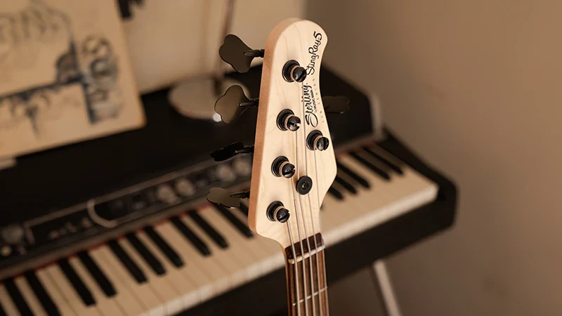 La StingRay 5 HH offre une attaque franche, un bas médium solide et une dynamique puissante typique des micros céramiques. Le sélecteur 5 positions permet de passer d’un son StingRay classique (pont) à des timbres plus ronds, creusés ou articulés selon les combinaisons des deux humbuckers. Le manche érable / touche jatoba apporte un toucher rapide et un bon claquant. La 5ᵉ corde (.125) conserve une tension correcte grâce au diapason 34″.