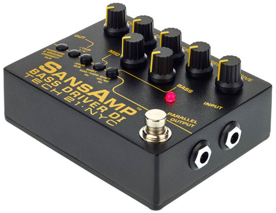 Le constructeur new-yorkais y a également intégré un contrôle médium avec un switch Mid Shift permettant de choisir entre 500 Hz et 1000 Hz. La technologie SansAmp 100% analogique simule toute la chaîne de traitement, du préampli à lampes jusqu’à la simulation de haut-parleurs.